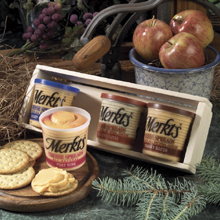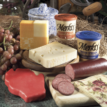 Snacking is twice as nice with this special sampler assortment. Package features four award winning cheese spreads plus two delectable summer sausages. -8oz Merkts Port Wine -8oz Merkts Swiss Almond -8oz Merkts Chunky Bacon -8oz Merkts Sharp Cheddar -8oz Beef Sausage -8oz Garlic Beef Sausage