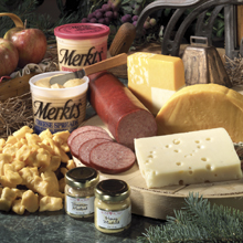 This executive-style sampling of our most populat treats is sure to "wow" a hungry crowd. -1lb. Baby Swiss -1lb. Wisconsin Swiss -1lb. Extra Sharp Cheddar -1lb. Hot Pepper Cheese -1lb. Black Olive Muenster -1lb. Dill Havarti -1lb. Widmer Brick -1lb. Longhorn Colby - 2-16oz. Merkts Cheese Spread - Gouda Round -1.5lb. Hand Tied Beef Summer Sausage -1.5lb. Hand Tied Beef/Garlic Sausage -2 mustards