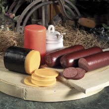 Cheese and sausage lovers will treasure this perfect assortment that includes Wisconsin's finest Colby and Sharp Cheddar plus flavorful Wisconsin summer sausage. 2-8oz Beef Summer Sausage 1-8oz Garlic Beef Summer Sausage 1 lb. Sharp Cheddar waxed covered gem 1 lb. colby waxed covered gem