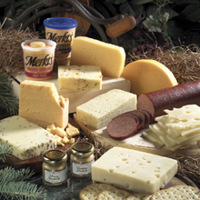 Say "happy holidays" with a flavor-filled gift-this bountiful package will deliver your greeting in delicious style. -1/2lb. Swiss -1/2lb. Baby Swiss -1/2lb. Sharp Cheddar -1/2lb. Dill Havarti -1/2lb. Longhorn Colby -1/2lb. Hot Pepper Jack -1/2lb. Caraway Brick -1/2lb. Widmer Brick -2-8oz. Merkts -1.5lb. Hand Tied Beef Summer Sausage -2 Stone Ground Mustards