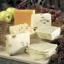 Here's the ideal way to liven up your health conscious snack tray. Our unique vegetarian assortment is filled with flavors that are sure to please. 1/2 lb. Green Pepper Muenster 1/2 lb. Vegetable Muenster 1/2 lb. Black Olive Muenster 1/2 lb. Walnut Muenster 1/2 lb. Dill Jack 1/2 lb. Medium Cheddar